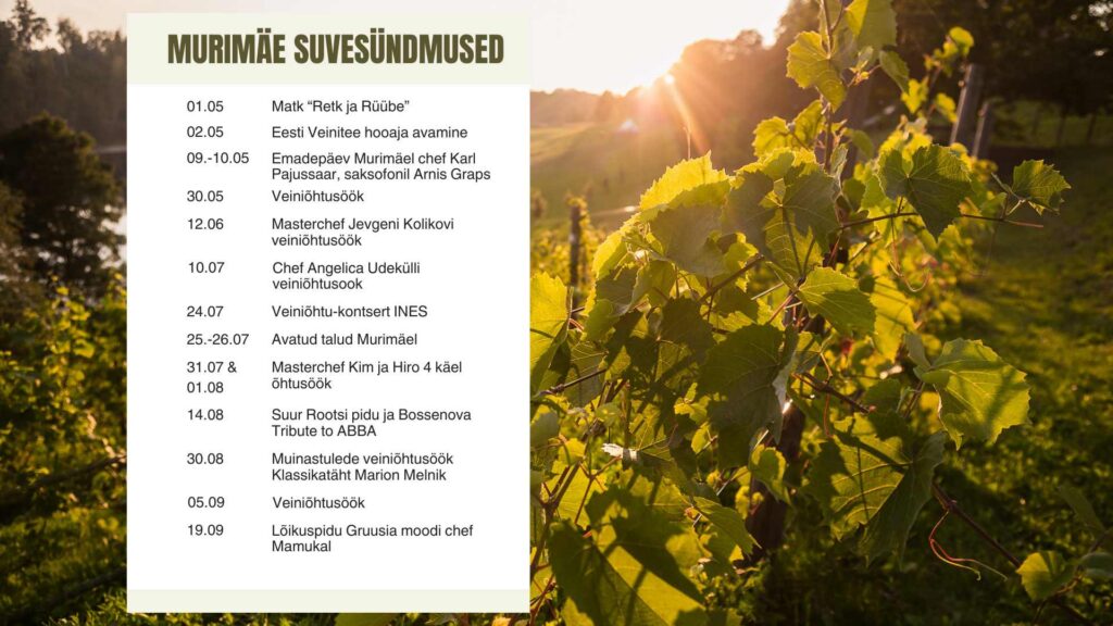 Murimäe veinikelder – maailma põhjapoolseim terrassidel asuv viinamägi. Külastage meid maaliliste Otepää kuplite vahel ja maitske meie ainulaadseid veine.